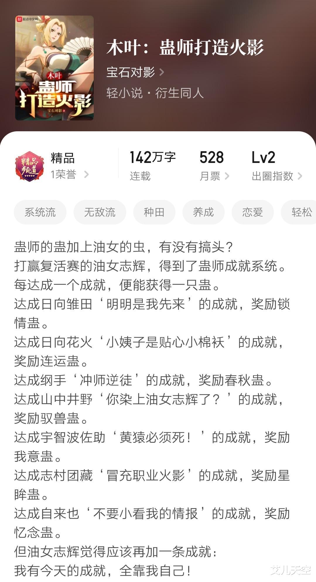 前世玩着火影手游之后,又看了蛊师小说的主角穿越火影世界成为了油女志乃的哥哥,随后开启了一个大爱仙尊成就系统。随着自己达成各种成就,就能获得各种蛊虫奖励。