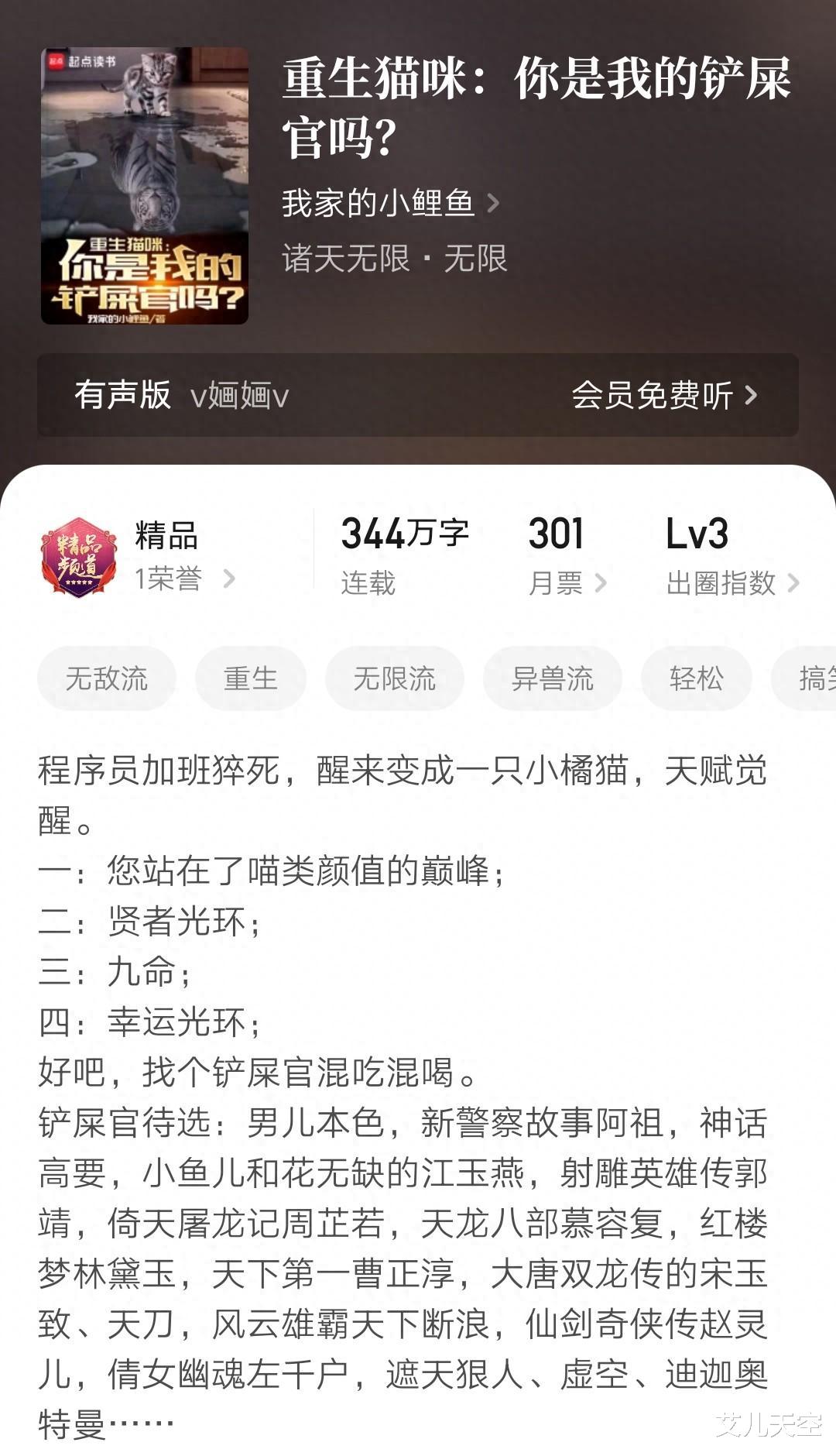 1、《重生猫咪:你是我的铲屎官吗?》344万字完本