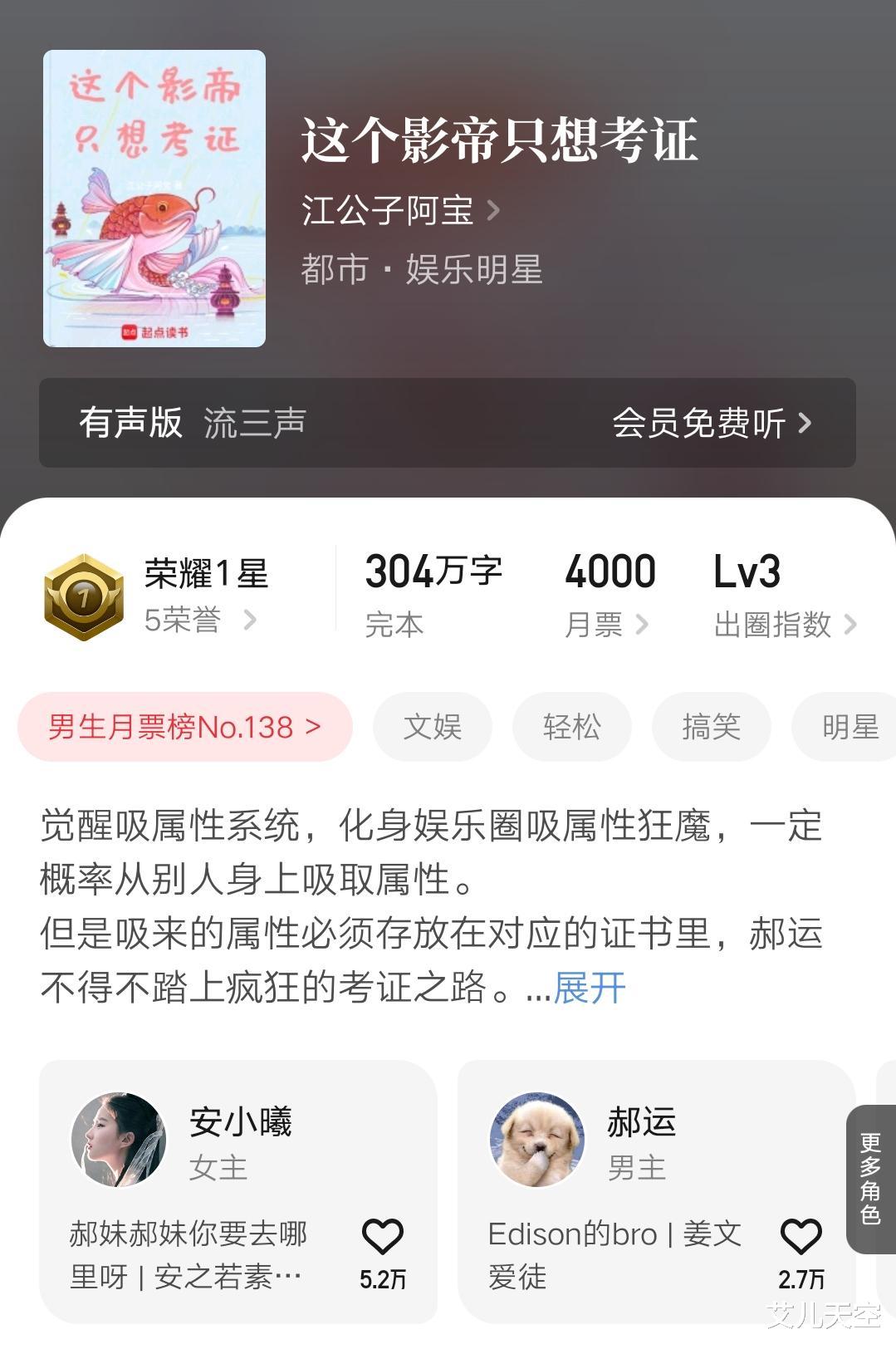 只是这些属性有时效,主角消化吸收又没有那么快,而各种证书却可以保存这些属性,主角也就从一个路人群演一路靠着吸收属性提升技能,逐渐走上了实力演员的通大道了。