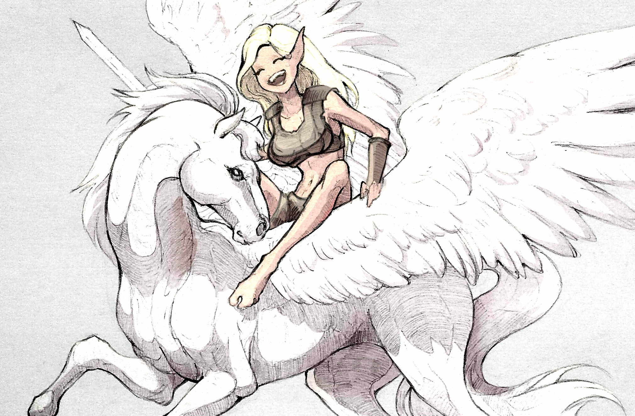 飞马,神话中驰骋天际的灵韵之兽,在《英三》设定里偏爱于魔泉中沐浴,汲取自然 魔法之力。精灵女战士会捕获并驯化这些神兽,组建为兼具飞行与反魔法特质的王牌 部队——它们周身流转的魔法能量,能强力干扰敌方施法,迫使对手消耗双倍魔力, 因此被誉为“施法者的噩梦”。这般战略级兵种,王室自然选派了最懂其价值的精灵 德鲁伊——艾丽斯统领。