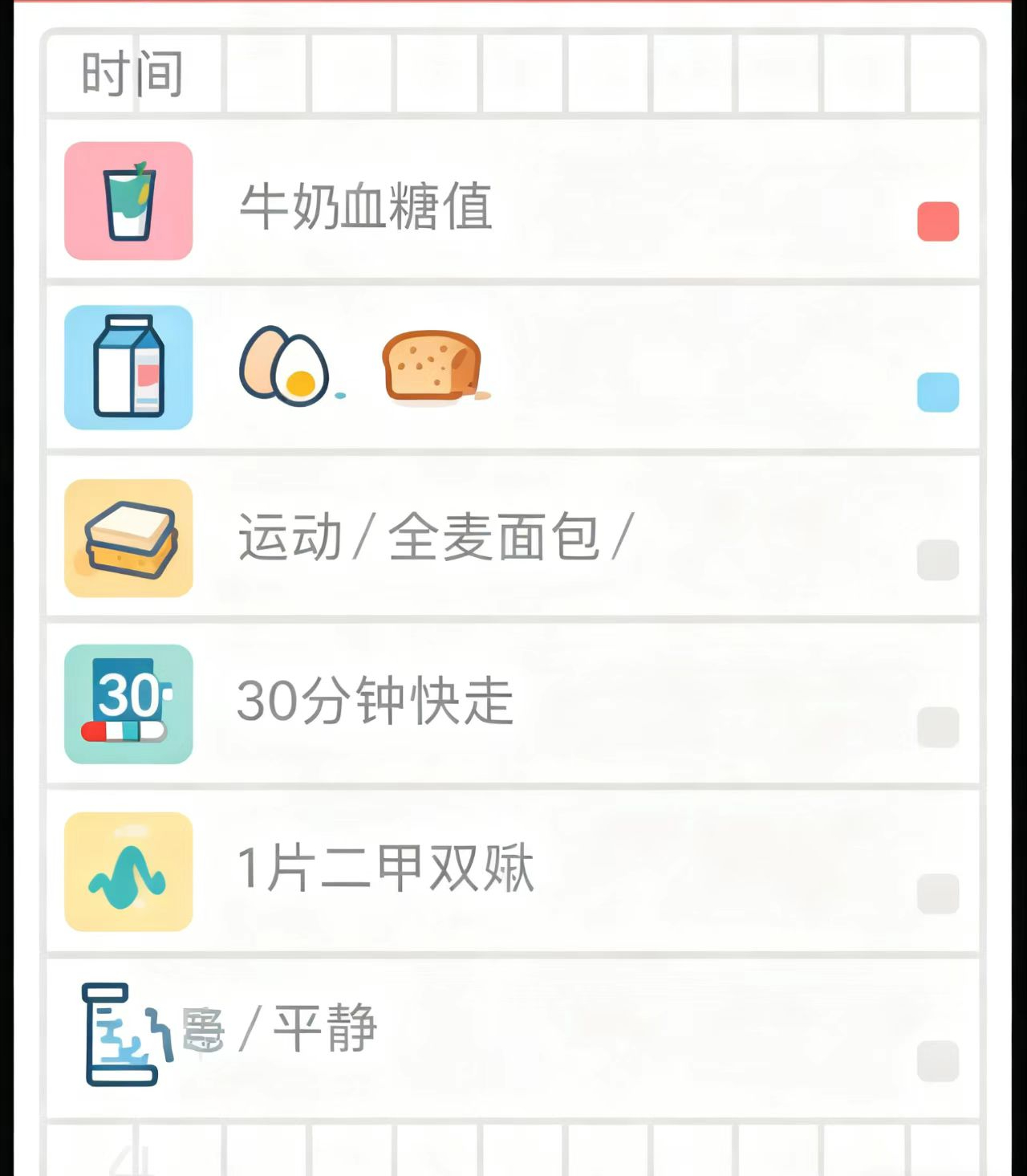 2. 饮食记录(关键拼图)这是解码血糖波动最重要的线索。不需要精确到克,但要详细记录:
