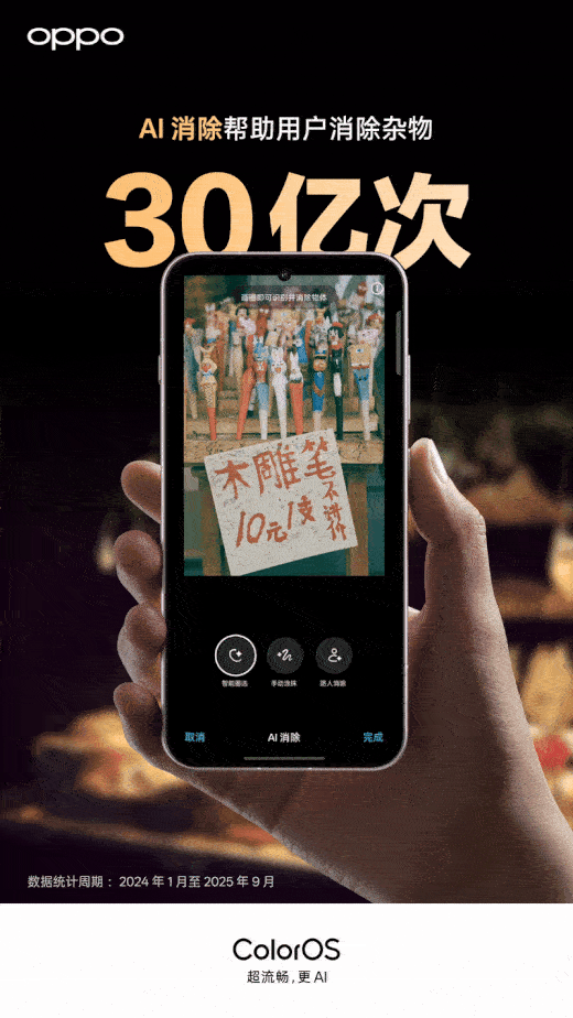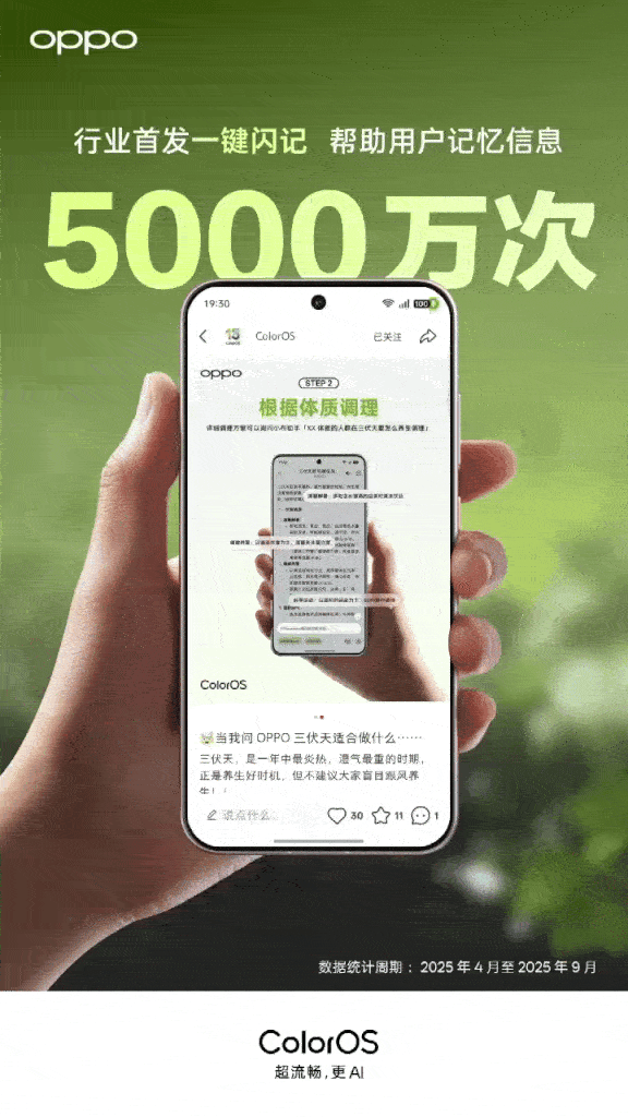 一组数据:截止到2025年9月,ColorOS的AI消除帮助用户消除杂物30亿次,一键问屏帮助用户解决疑问1亿次,小布记忆帮助用户记忆信息超5000万次,不少OPPO/一加的用户都表示现在修图写文案都离不开这些AI功能了~