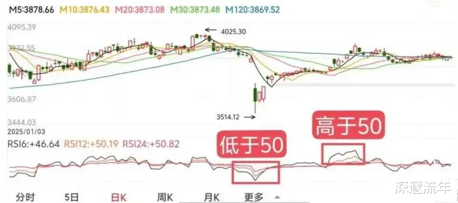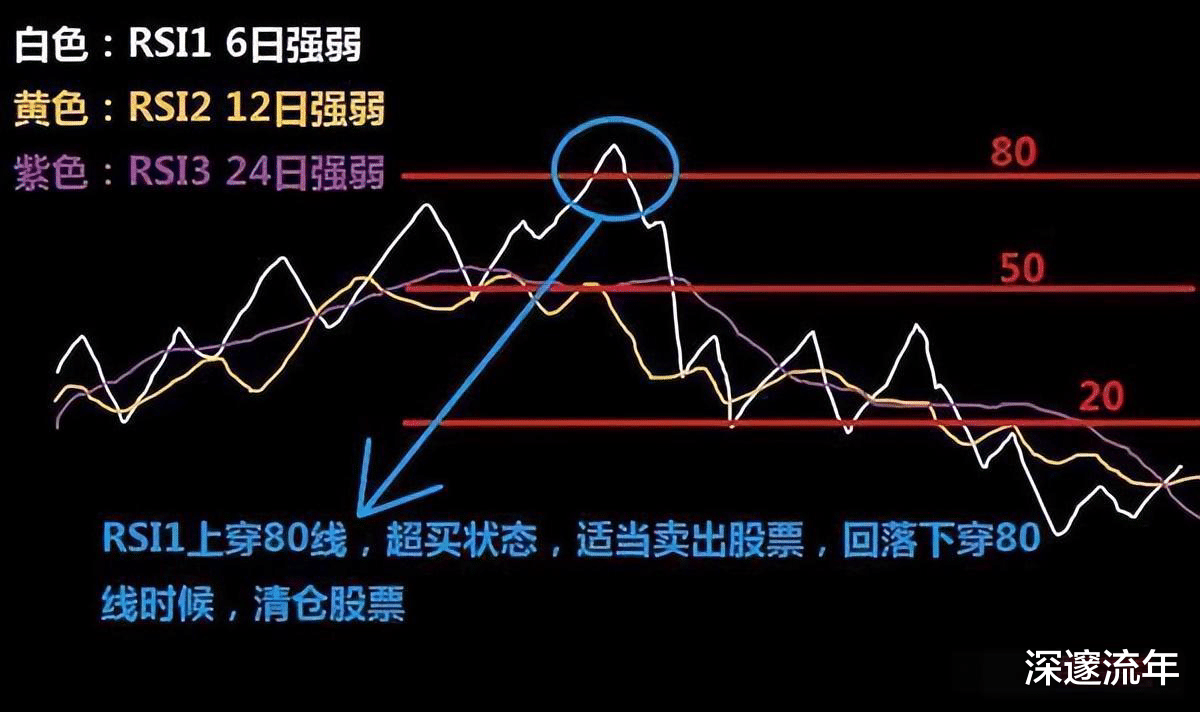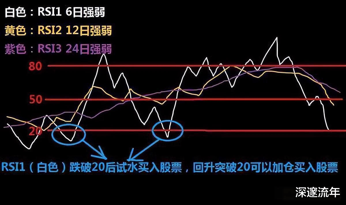 结果会在0~100之间波动。大于50,市场偏强;小于50,市场偏弱。常用参数是6日、12日、24日,分别代表短、中、长周期的市场力量。
