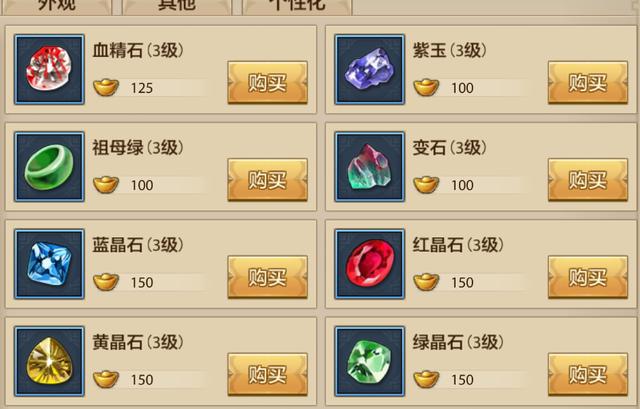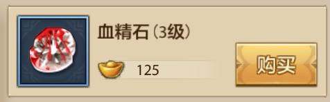 血精石(3级)价格是125元宝一个,按照官服比例来算,价格是12.5,这价格着实有些酸爽,据小编计算,一套全身5级的宝石需要152500元宝,也就是15250块。反正小编是花不起,太贵了!