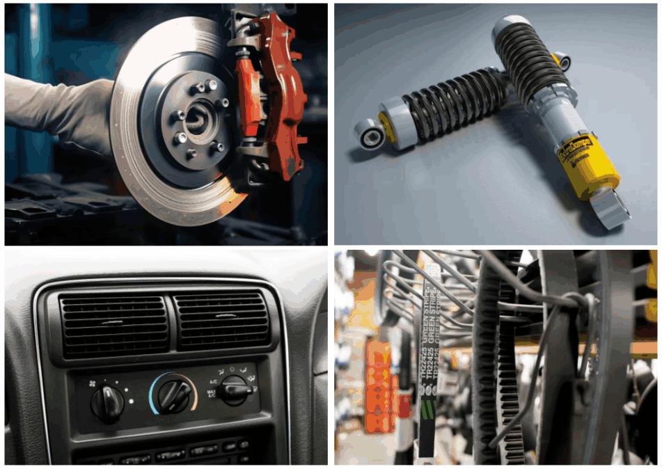 底盘系统、制动系统、新能源三电系统、发动机&变速箱系统、车身外覆盖件、车身内饰件、标准件、售后维修件、空调系统、再制造零部件等。