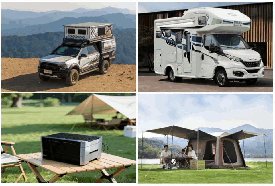车顶帐篷、储能电源、露营帐篷、移动照明、车载冰箱、保温箱、车载电器、便携式炉具、餐具、桌椅等