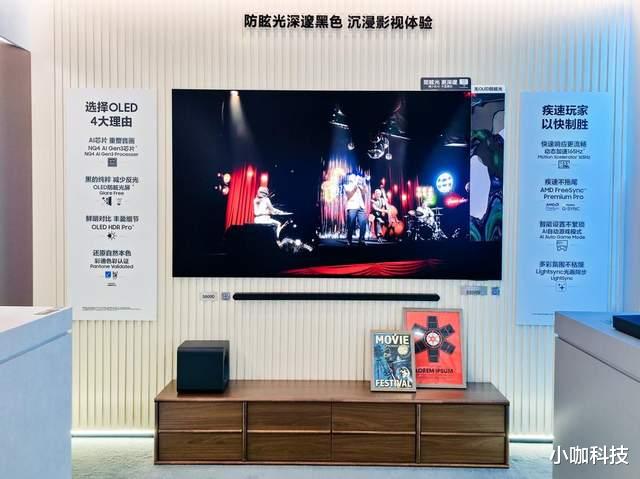 三星电视以全场景产品布局,为用户解锁家居生活的多元价值。此次展出的115英寸Neo QLED 4K QN90F星影巨幕成为家庭影院场景的核心代表,专为巨幕体验研发的超大屏影像增强器,整合了AI驱动的影像增强、降噪、清晰度增强及智能黑色增强技术,确保了巨幕上每一帧画面的精彩绝伦。面向游戏等高性能应用场景,三星OLED系列S95F表现出众。其支持高达4K 165Hz的可变刷新率(VRR),FreeSync Premium Pro与NVIDIA G-Sync兼容技术带来流畅敏捷的游戏操控体验。三星Lifestyle艺术系列以工业美学与家居艺术的深度融合,成为高品质艺术电视的代表。三星The Frame画壁艺术电视通过量子点Mini LED背光技术与哑光屏显技术配合,呈现真实画布的纹理与质感,获得彩通(PANTONE)艺术认证。三星艺术画廊+服务囊括千余幅精选典藏名画,纤薄机身配合可更换磁吸式艺术边框与贴合壁挂架能融入多元家居风格。三星Music Frame画壁艺术音响则是其最佳搭档,相框式外观设计极具美学意味,120W峰值功率辅以无线杜比全景声、Q交响乐技术协同营造立体声场。The Serif画境艺术电视以标志性“I”字型框架与柔和典雅的云白色机身成为家居空间中的视觉焦点。Neo QLED 8K QN900F则采用全新金属楔形边框结构,实现画框般的艺术形态。此外,三星在展会现场还展出了包括HW-Q990F、HW-QS700F在内的多款条形音响产品,进一步完善了家庭影院生态。