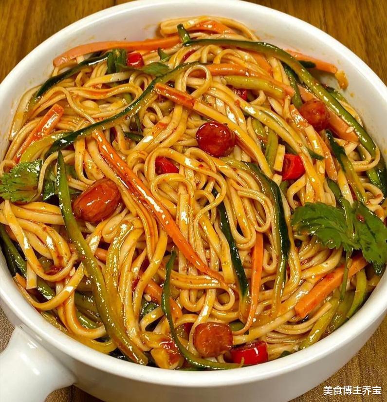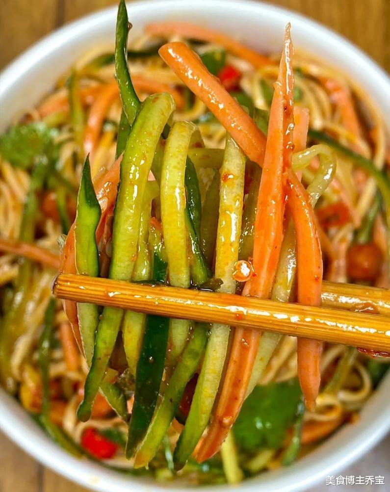 制作时咱们要注意以下这些问题:凉拌面的关键在于调料汁的调制,可以根据个人口味进行适当的调整,面条不要煮得过软,以免影响口感。凉拌面最好现做现吃,这样口感最佳,如果喜欢酸辣口味,可以增加醋和辣椒油的用量,可以根据季节和个人口味,添加其他蔬菜,如豆芽、青椒等。凉拌面通过冷食的方式呈现,面条经过冷水冲洗后,口感爽滑,搭配各种蔬菜和调料,使得整道菜肴清爽可口,特别适合夏日食用,能够有效缓解高温带来的闷热感。凉拌面的食材和调料非常灵活,可以根据个人口味和喜好进行调整。常见的蔬菜有黄瓜、胡萝卜、青椒等,而调料则包括酱油、醋、香油、蒜末等,这些食材和调料的组合使得凉拌面的口味层次丰富,既有酸甜咸鲜,又有麻辣刺激,满足了不同人的口味需求。凉拌面的制作方法和食材搭配具有很大的创新空间,厨师和爱好者可以不断尝试新的食材和调料组合,创造出新的风味和风格,这使得凉拌面始终保持着新鲜感和吸引力。凉拌面作为夏季餐桌上的清凉佳品,以其独特的口感和丰富的营养价值,深受人们喜爱。无论是作为夏日的开胃菜,还是作为主食的搭配,凉拌面都是一个非常好的选择。