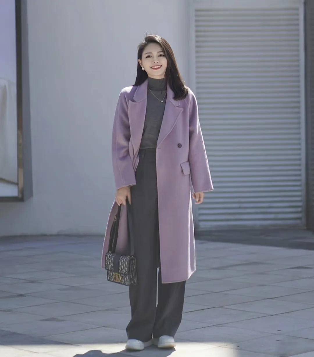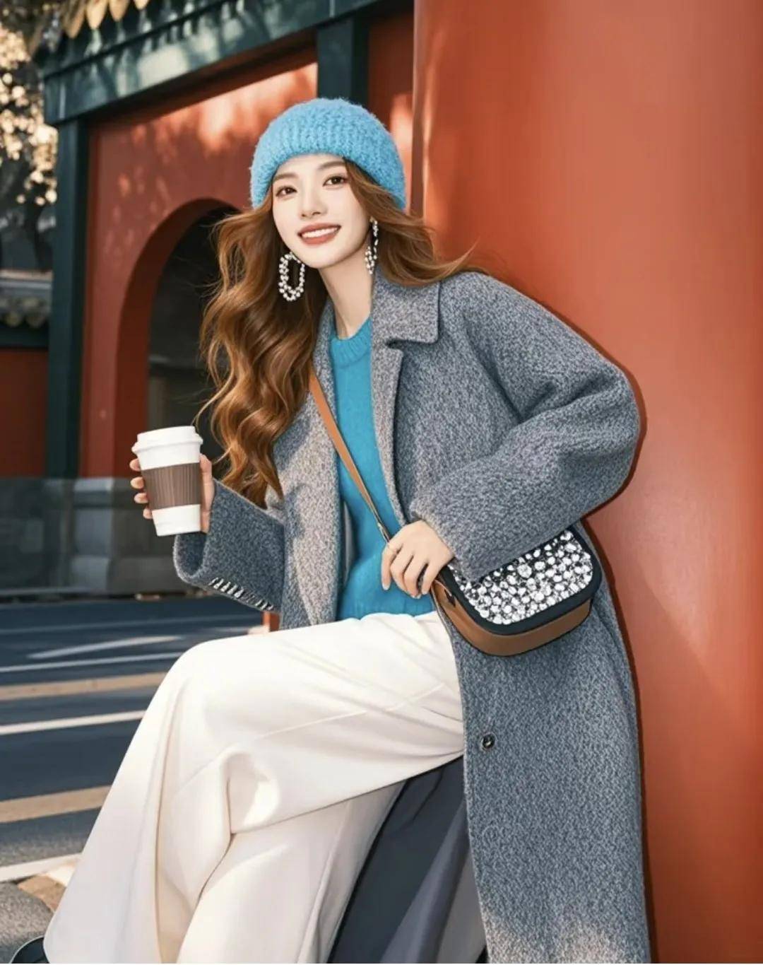这样的色彩搭配,既有温婉女性的柔美,又兼具了都市女性的干练与知性。简洁优雅,让人眼前一亮,仿佛是为冬日里每一位追求时尚与温度并存的女性量身定制的完美选择。
