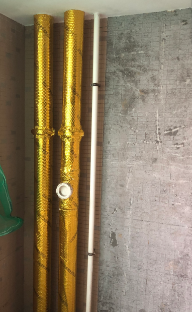 我们采取双重隔音,先在管道内包一层降噪阻尼片(黄色),然后包一层银色隔音棉,双重隔音噪音更低。