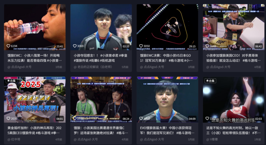 而格斗竞技赛事在互联网同样具有巨大的声量。在B站、抖音等主流视频平台,格斗赛事精彩切片的播放量持续走高,经常突破百万大关;每当“小孩”等明星选手夺冠,相关视频更是能迅速冲上热门,百万播放同样不在话下。这些数据背后,是格斗游戏激烈对抗所带来的天然内容吸引力。