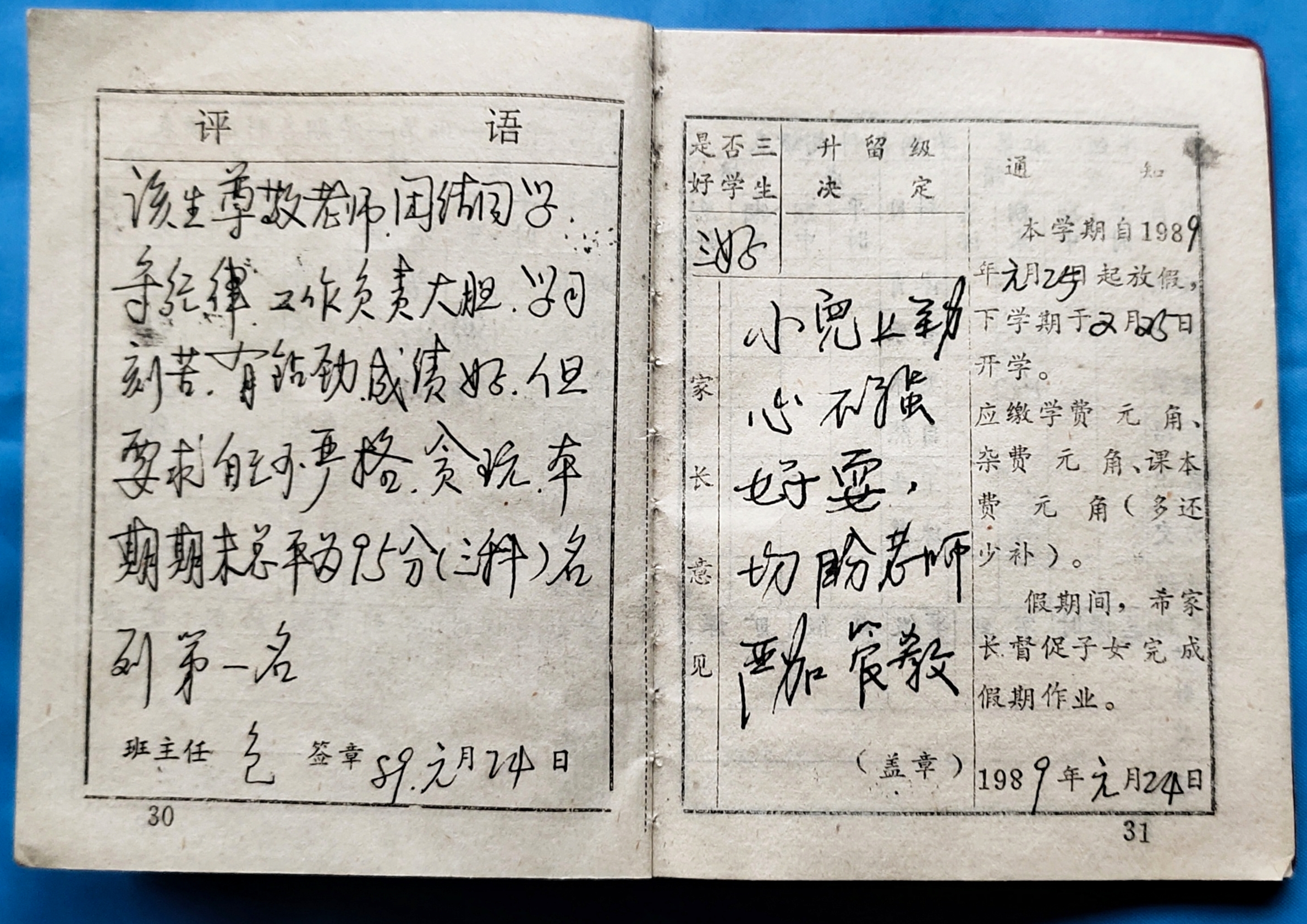 ▲我的小学成绩单(小学生手册)一年级第二学期