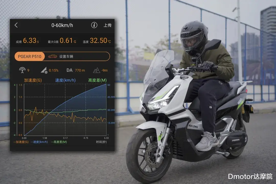 锐龙i60的Sport模式的加速度是最猛,体重约85公斤的司机用P-Gear测试锐龙i60的Sport模式下全力起步加速。