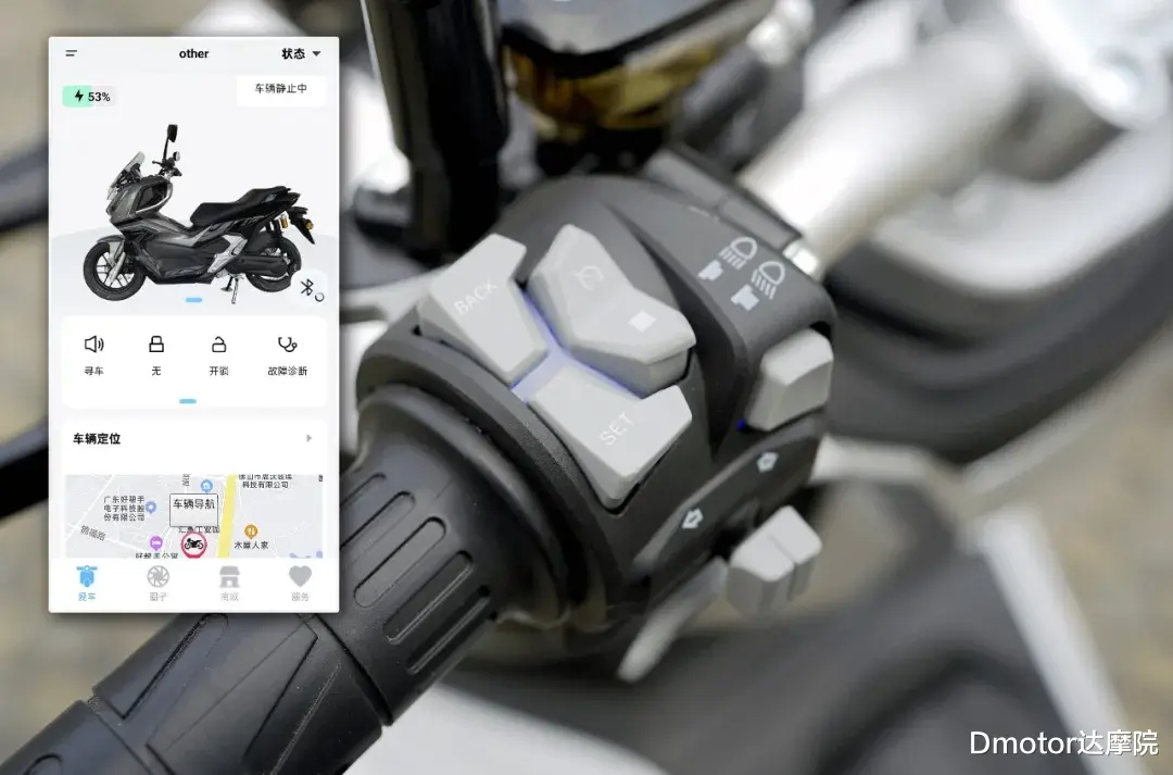 锐龙i60右手手把按钮操控P档和R倒车挡;右手车把则有定速巡航和操控行车电脑等按钮。