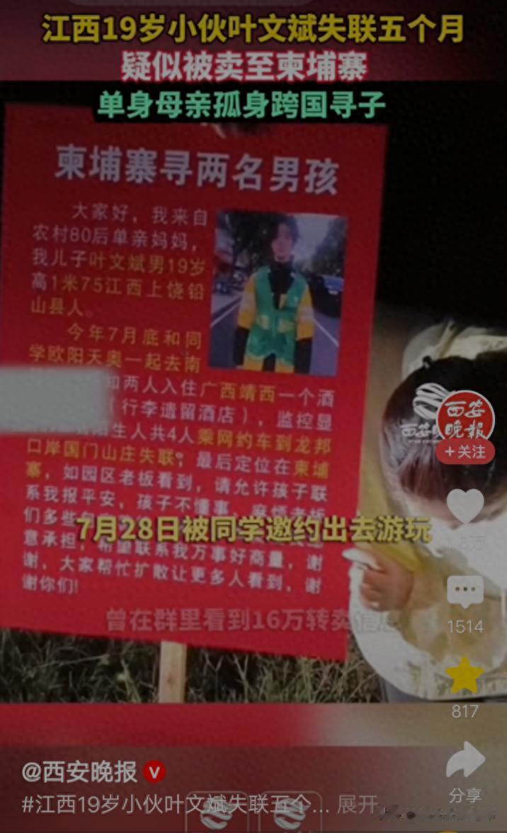 不料,叶文斌轻信同学,外出旅游,被人骗至柬埔寨转卖。