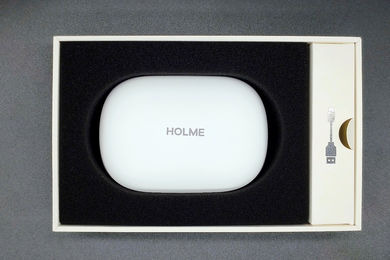 虹觅HOLME Olite采用了简约时尚的外观设计。它的充电仓表面为磨砂材质,手感很好,而且还具备不易沾染指纹和灰尘的优点,兼具了美观和实用的特性。