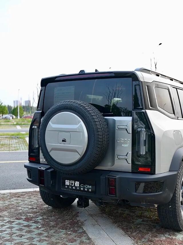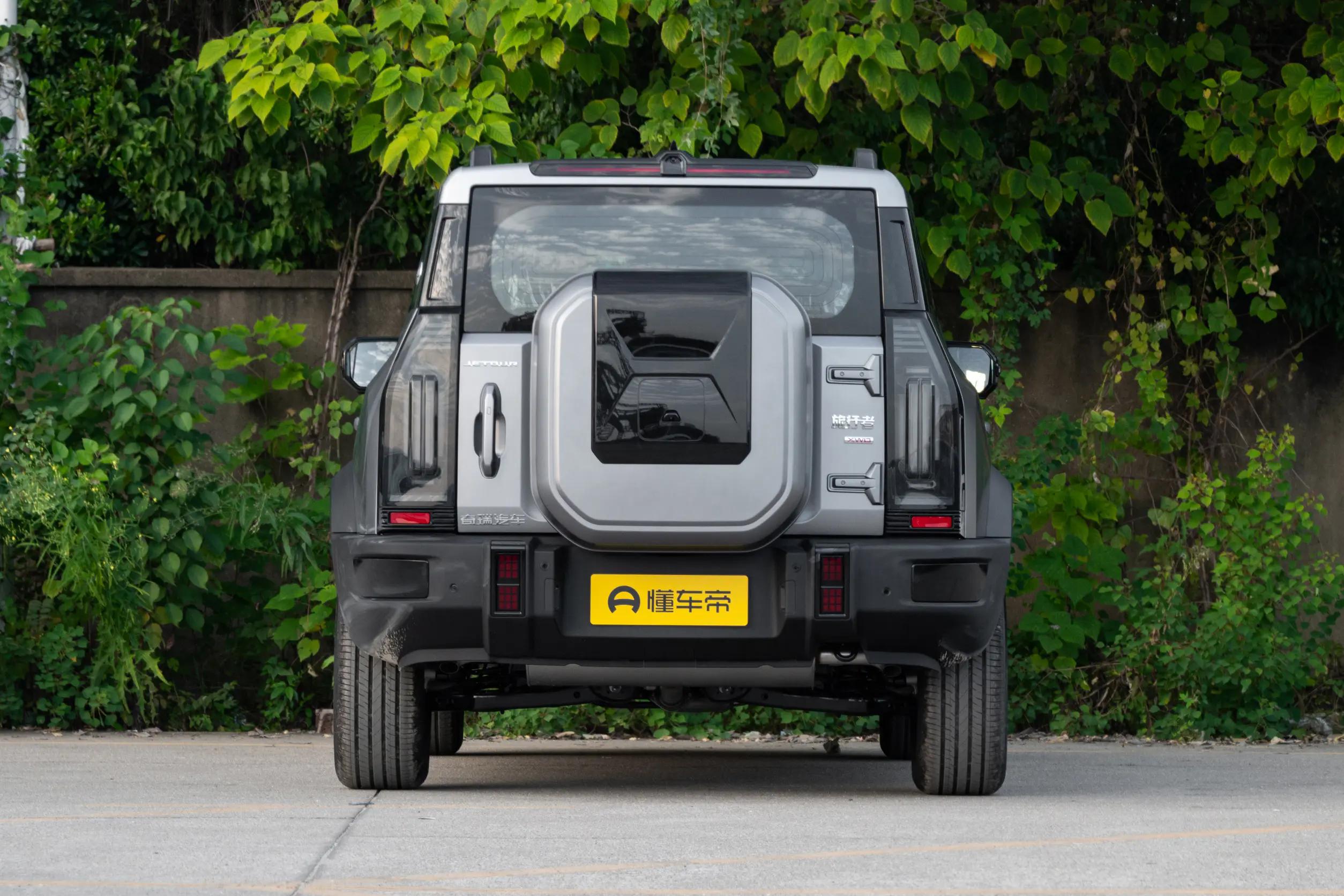 尾部保留外挂式备胎罩设计,搭配竖置点阵式LED尾灯,同时新增深海蓝所属车色,全车提供5+2种配色选择,金属漆面质感细腻。外挂备胎版本还加入智能灯语功能,用户可自定义文案或效果图案,提升个性化表达。车身覆盖件采用高比例高强度钢,笼式车身刚度达31000N·m/°,搭配磨砂防滑材质踏板,在防护性能与设计感之间达成平衡。