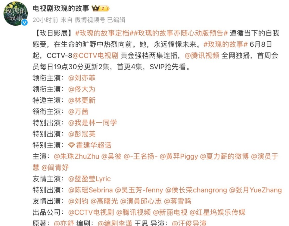随着《玫瑰的故事》的官宣定档,我们迎来了一部聚焦女性成长和情感抉择的电视剧。由刘亦菲领衔主演,搭档佟大为、林更新、霍建华