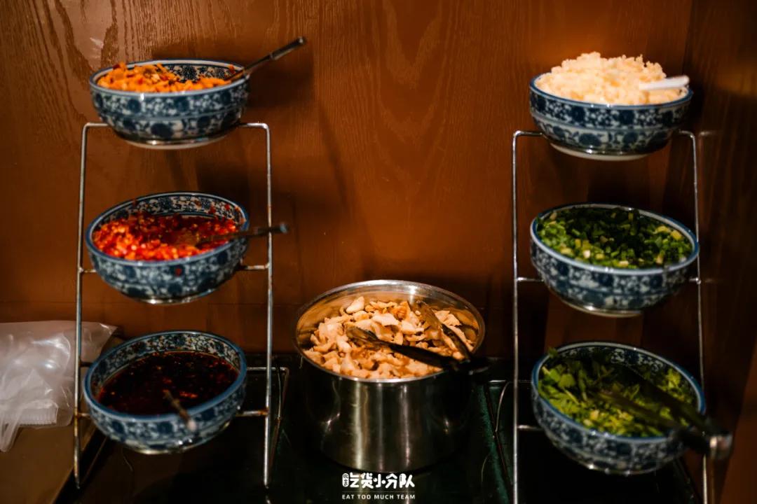每桌都放着山胡椒油,可以加在粉里提味,麻香升级。另外店内还有小料台,可以自己加油渣、萝卜干、辣椒等。