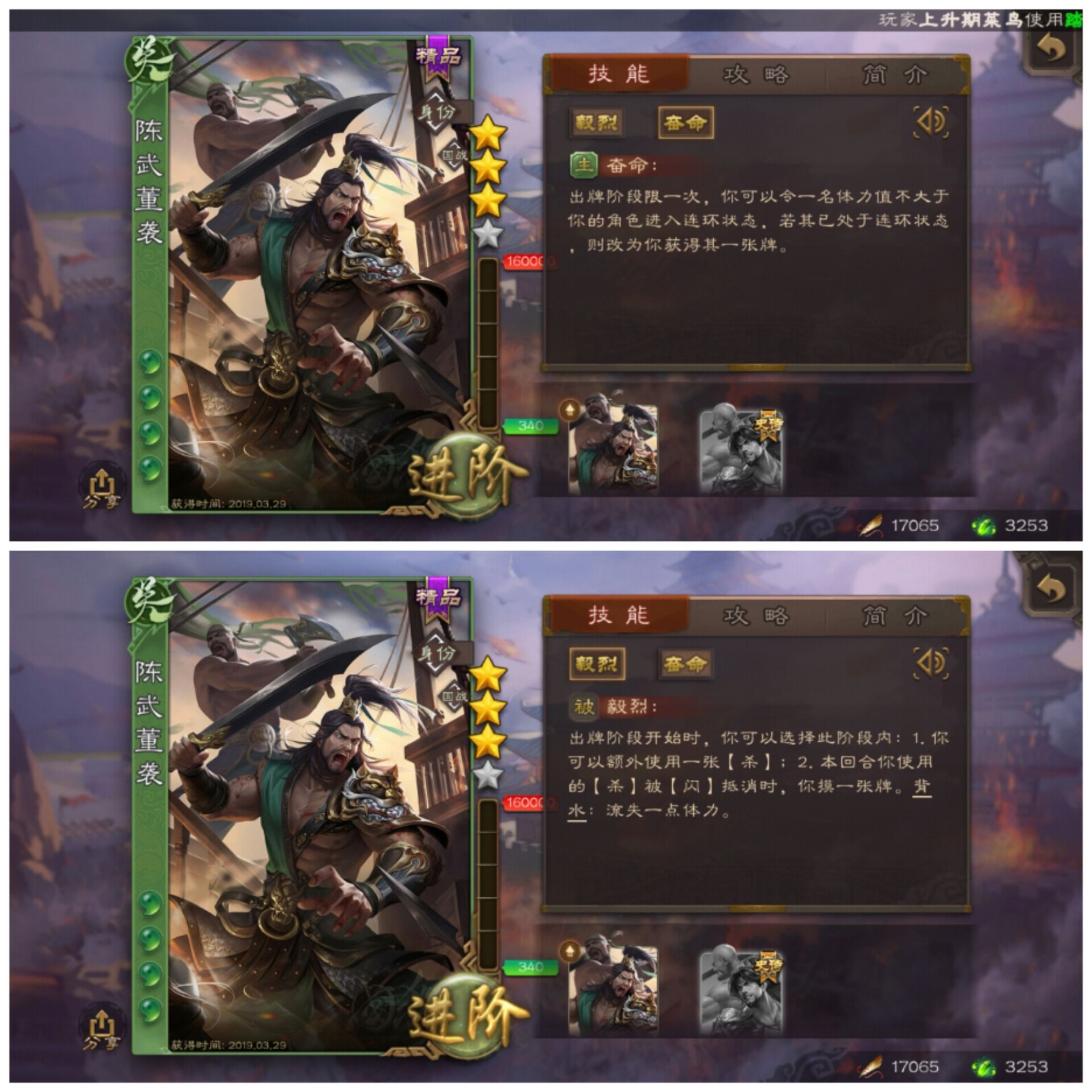 这两个武将时好几年前就在国战场更新出来了,强度也是一般般,没有什么亮点可言。前几周他们身份场的武将几乎同时更新了出来,经过实战测试,小输觉得两个新武将的强度都还不错,属于真正的精品武将,所以今天就介绍一下两个武将的技能。