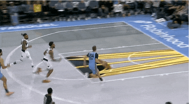 今日NBA杯,灰熊主场对阵独行侠。比赛第二节,斯潘塞抢断拉塞尔,但无人防守的情况下上篮偏出。