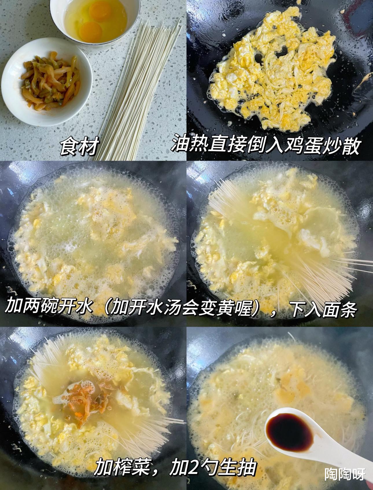 这碗面的魅力就在于它的快、香、鲜。做法简单又美味,咸香脆爽的榨菜,配上滑嫩的鸡蛋,再吸溜一口劲道的面条,幸福感瞬间爆棚!