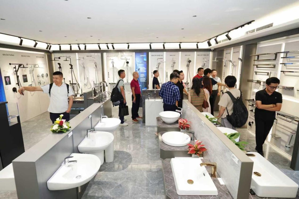 九牧已经在全球设立了15家高端黑灯工厂,产品远销120多个国家和地区。在东南亚、中东等地设立区域总部,并通过多品牌策略切入欧美高端市场。去年7月,九牧越南总部揭牌成立,随后越南河内首家旗舰店盛大开业,这都是其加速践行出海的重要布局。