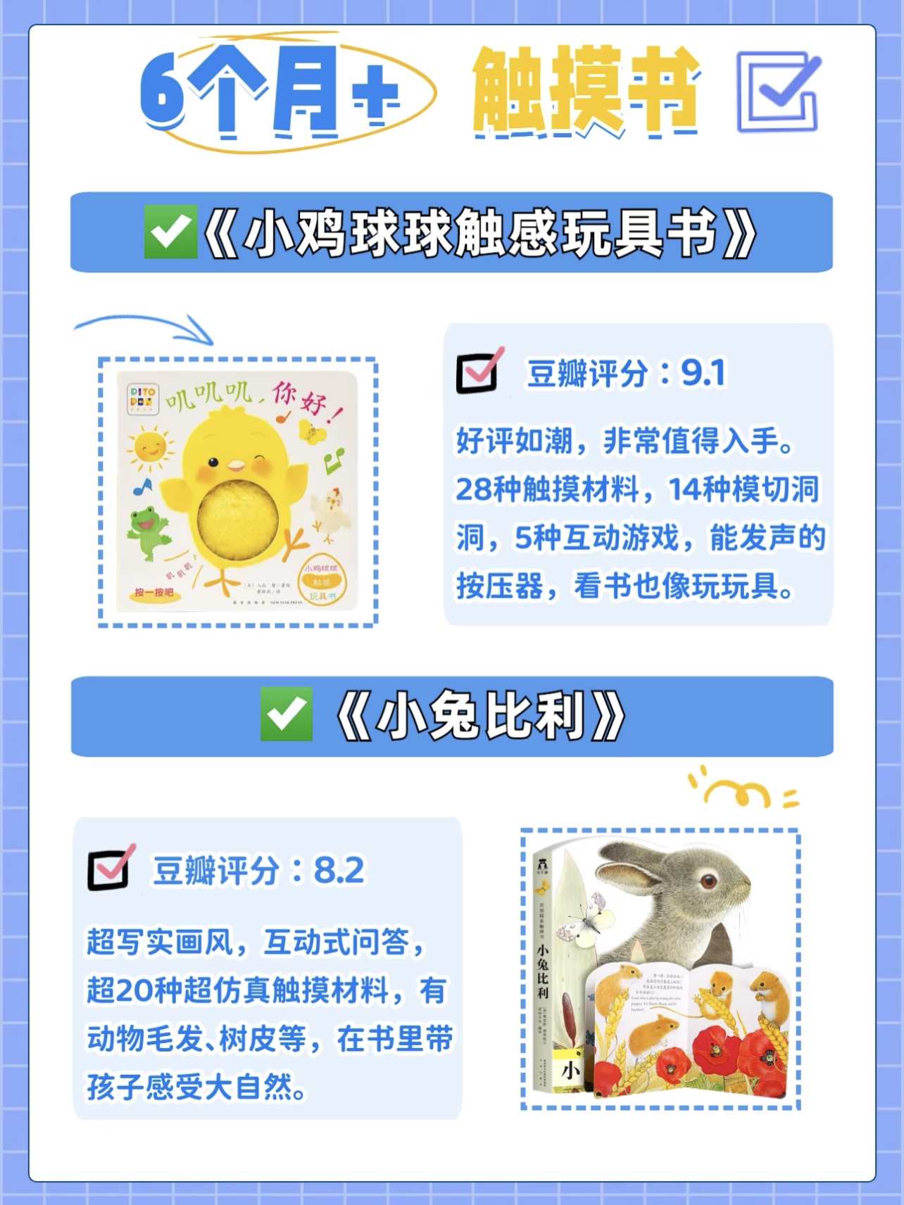 触摸书:感官体验的盛宴,触摸书是一种集视觉、触觉于一体的绘本形式。它通过在书页上添加各种材质的触摸元素,如绒毛、亮片、砂纸等,让宝宝在阅读的过程中能够亲身体验到不同的触感。这种多感官的阅读体验不仅能够激发宝宝的好奇心和探索欲,还能促进他们感官系统的发育。你可以和宝宝一起翻开触摸书,引导他们用小手去触摸、去感受书上的每一个细节。在触摸的过程中,你可以向宝宝描述这些触感的特点,如“这是软软的绒毛”、“这是滑滑的亮片”等,帮助他们建立语言和感官之间的联系。