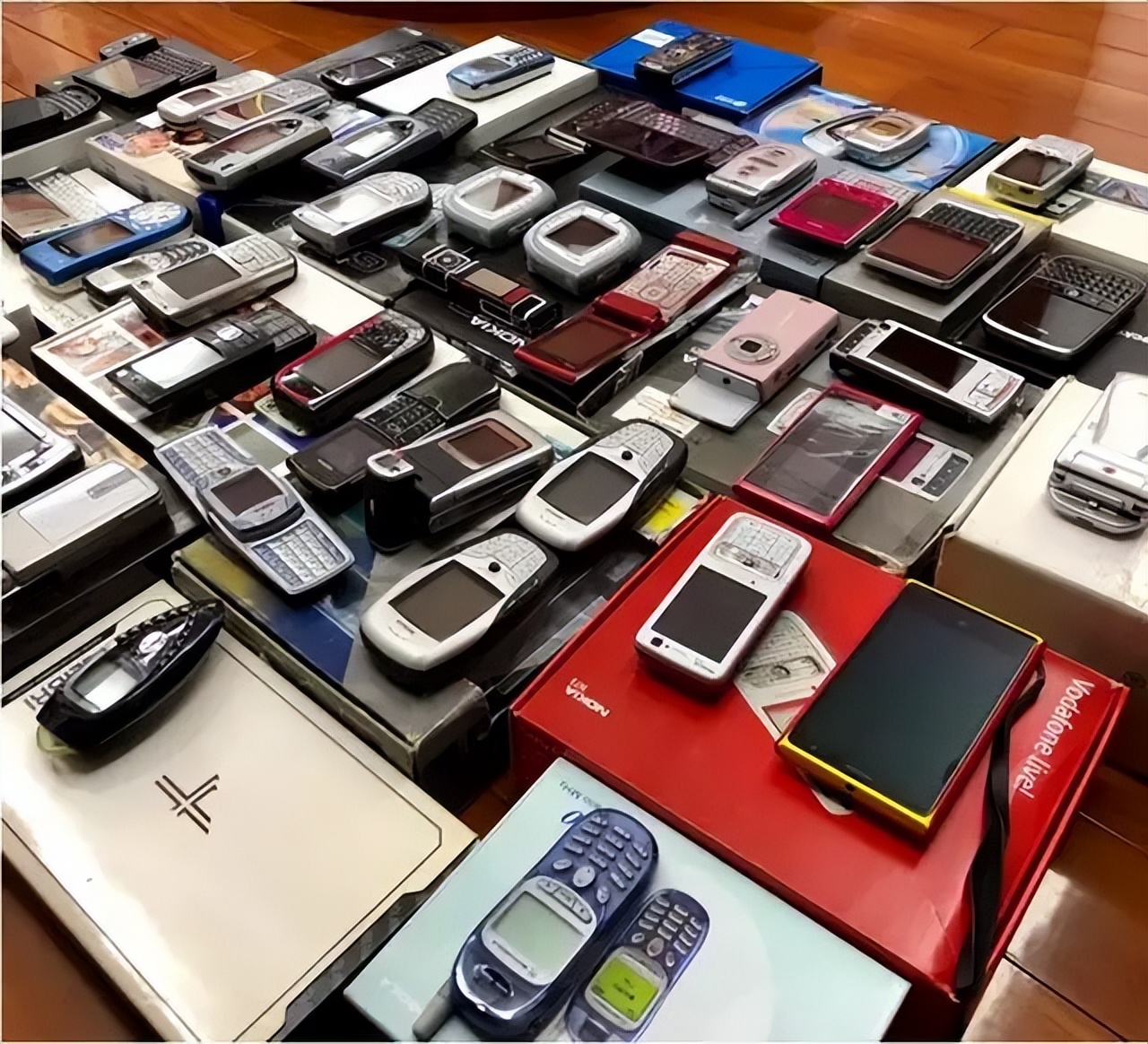 图中从黑白手机到彩屏手机,再到后来的塞班手机,甚至还有黑莓和Sidekick这种在国内十分罕见的机型。很多人只用过诺基亚的塞手机,比如图中的6600、N73、6680、7600、7650、N70、N95。