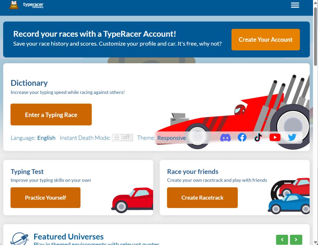 6、TypeRacerTypeRacer,这简直就是打字界的F1赛车,刺激得很!你能跟一堆陌生人同时在屏幕上打字,看谁最先“跑完”。今年它又推出了个语音转文字竞速模式,你连打字都不用,直接开口说,系统就能把你说的话转成文字,算入成绩。这样一来,等公交、坐地铁的时候,你都能随时随地玩一把。