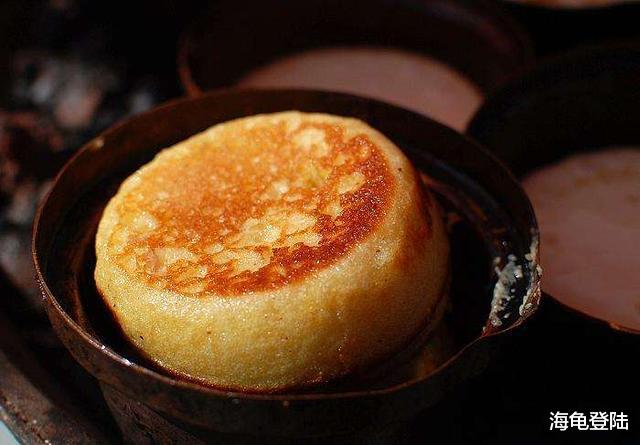 他家的熨斗糕很有名气。熨斗糕形似我们吃过的蛋糕,制作原料有相同的鸡蛋、白糖、蜂蜜,但不一样的是还有大量微酸的米浆,“烫、香、脆、嫩”非常好吃。