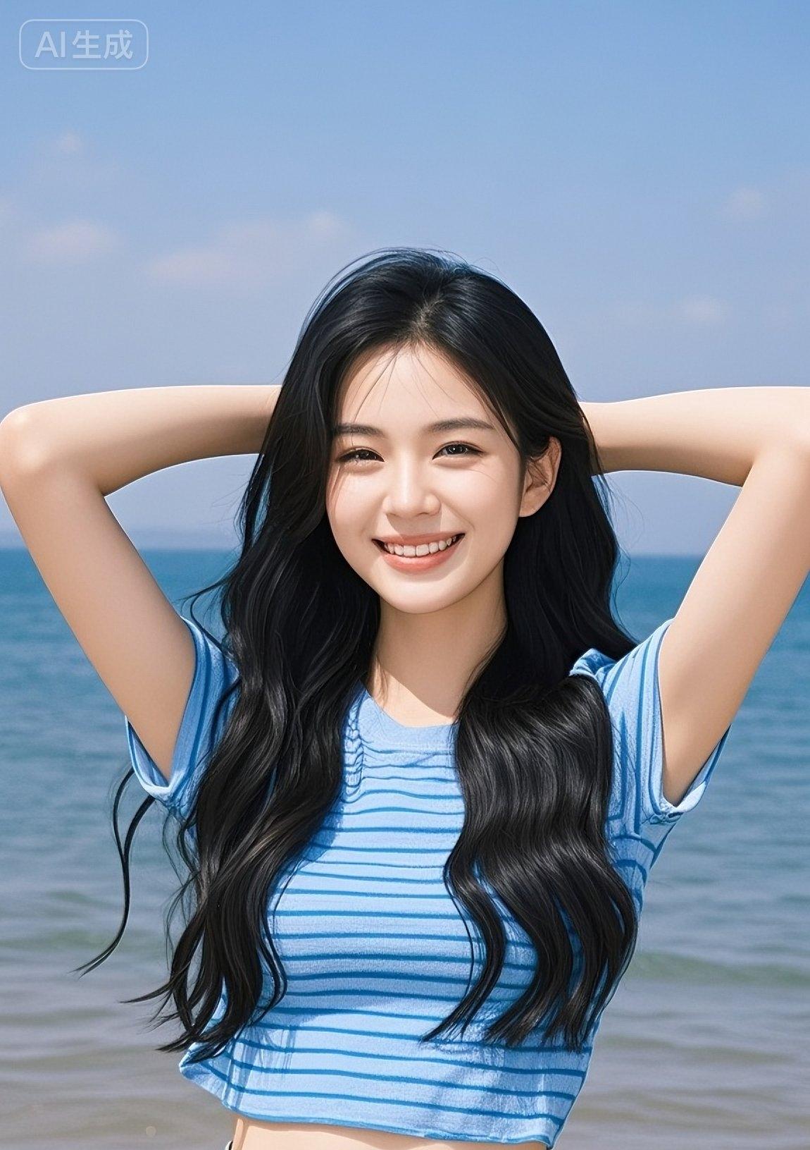 她亭亭玉立,在暮色里,静得像被浪吻过的沙,眼波盛着半片海的粼光,黑裙垂落时~~