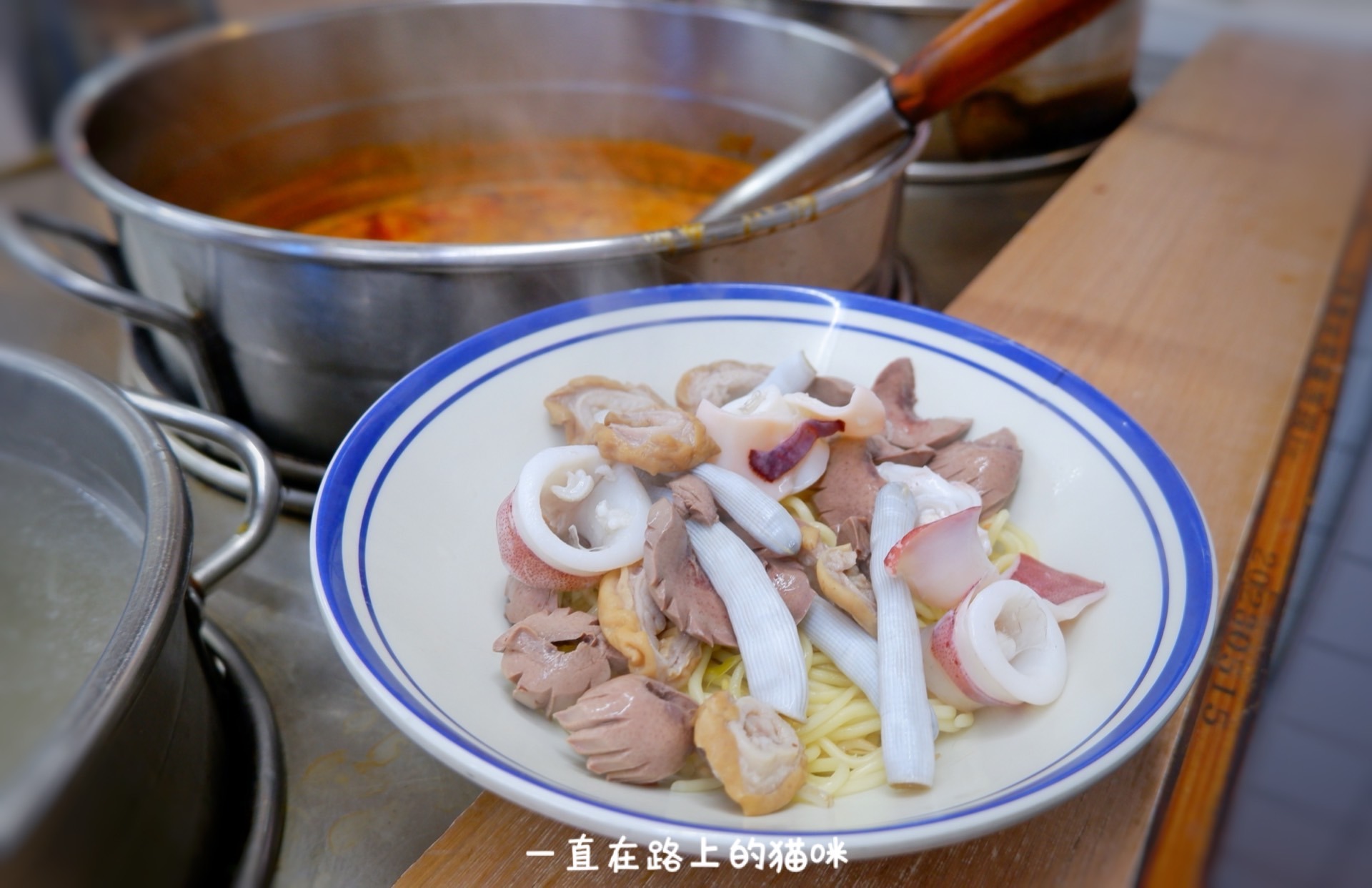 沙茶面都是现选加料现煮,面条烫一下,然后涮煮食材铺在面上,最后淋上沙茶汤,一气呵成,一碗碗香喷喷的面让人口水直流。