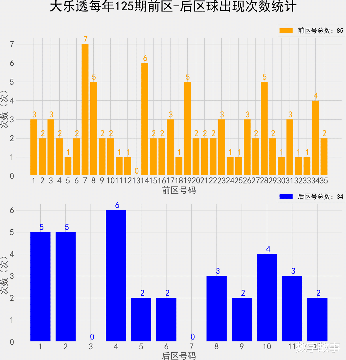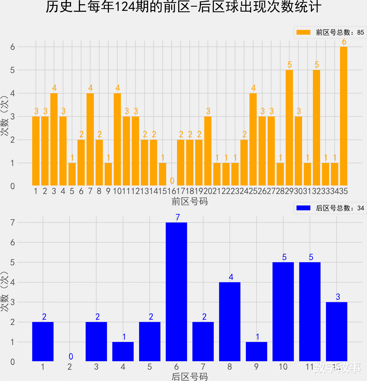 统计每年124期的样本数据: 85个前区号 34个后区号