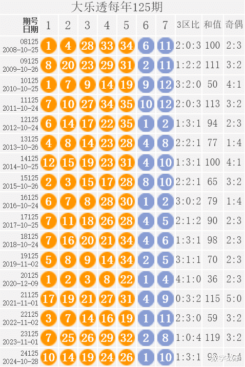 大乐透历史上的今天2025-10-31 星期五 大乐透不开奖每年10月31日出号情况: