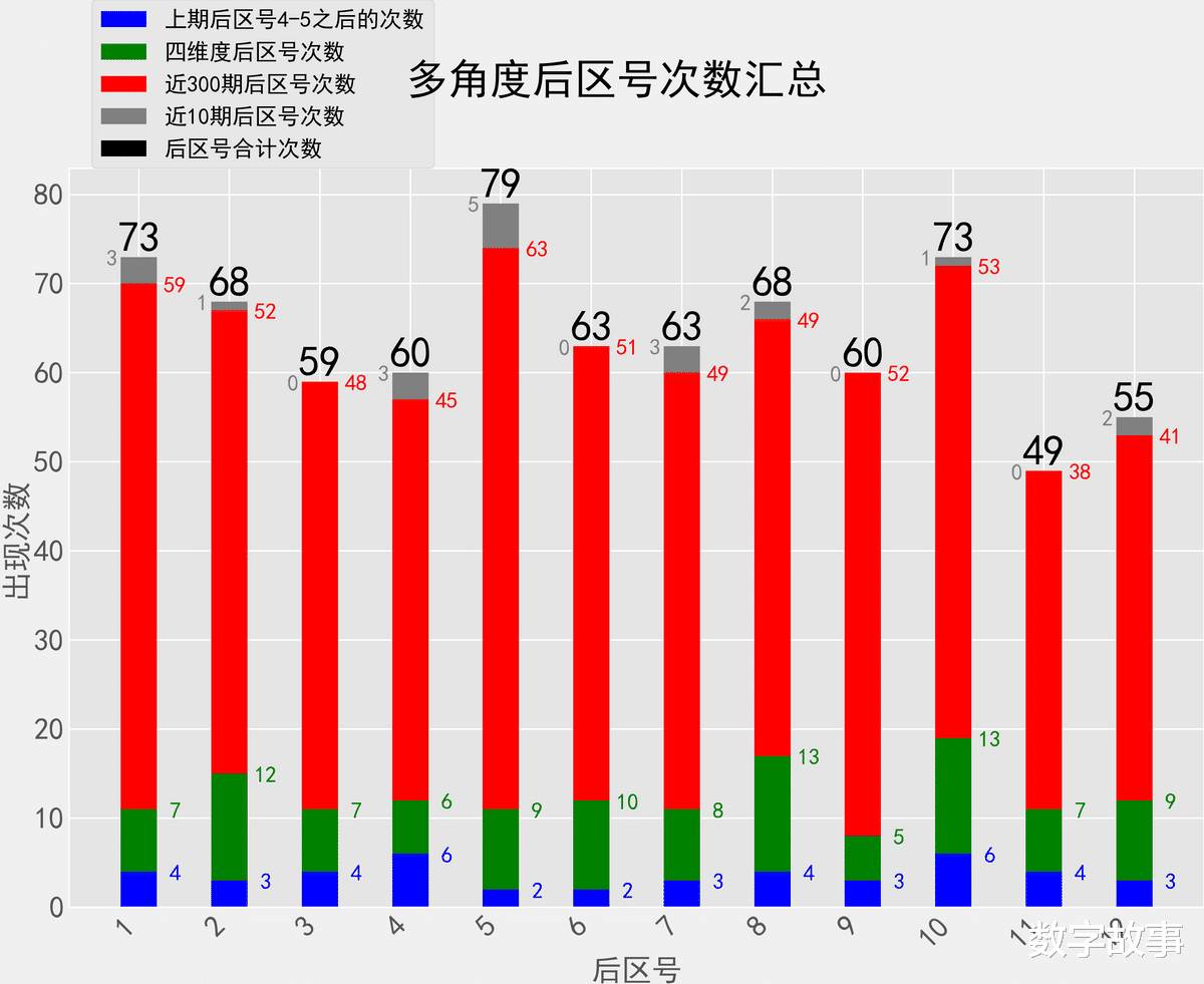 => 汇总的后区冷热号:热号:5,10,1冷号:11,12,3