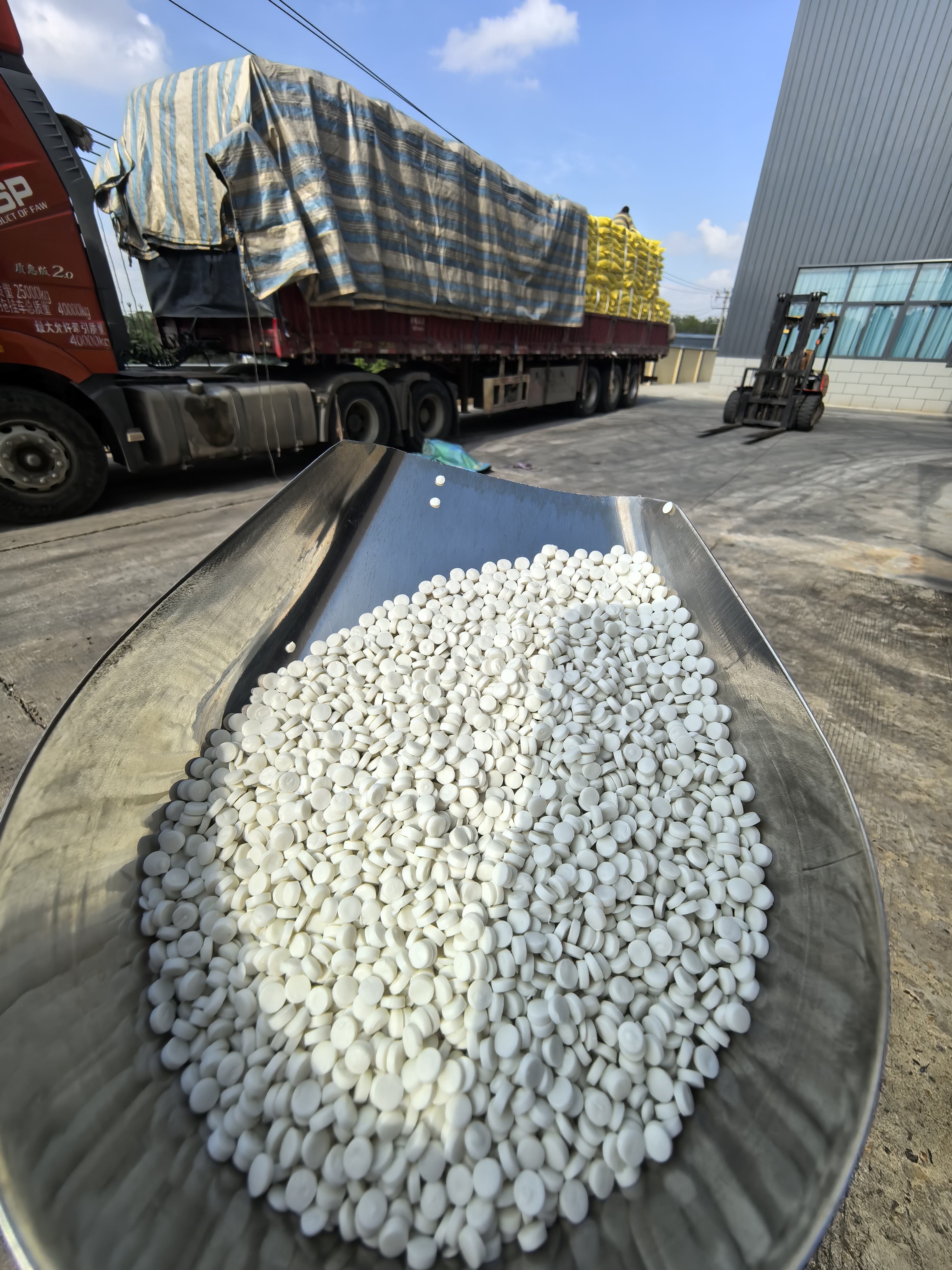 然后将片料送入反应釜中,加入硬脂酸钙及钙粉,连续搅拌30分钟,制得改性混合料。随后的低温烘烤和配料加入步骤进一步提升了最终产品的性能。
