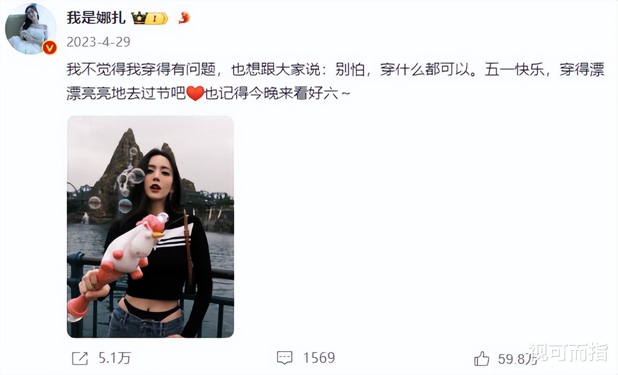 娜扎当时在面对争议时也曾公开发文,直言自己并不觉得穿搭有问题,她还和大家说,别拍,穿什么都可以。