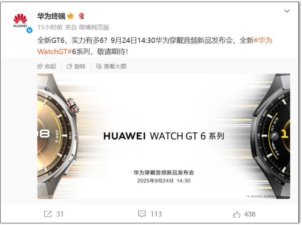 华为官宣Watch GT 6系列国内定档9月24日!多款新品同台亮相