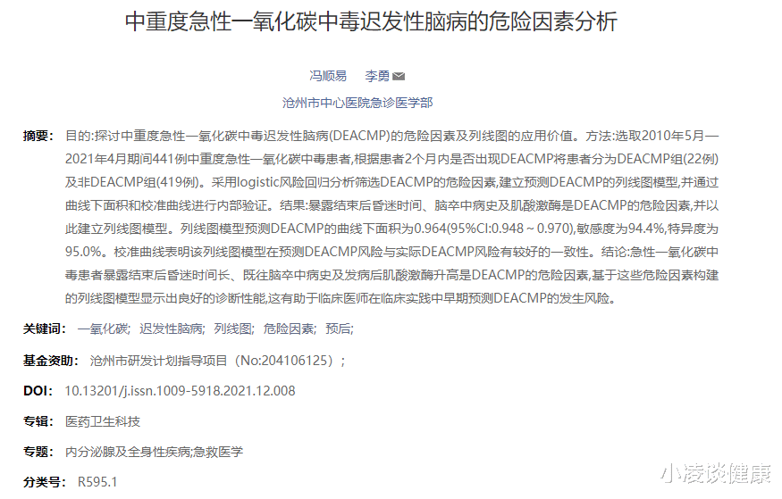 中重度急性一氧化碳中毒迟发性脑病的危险因素分析