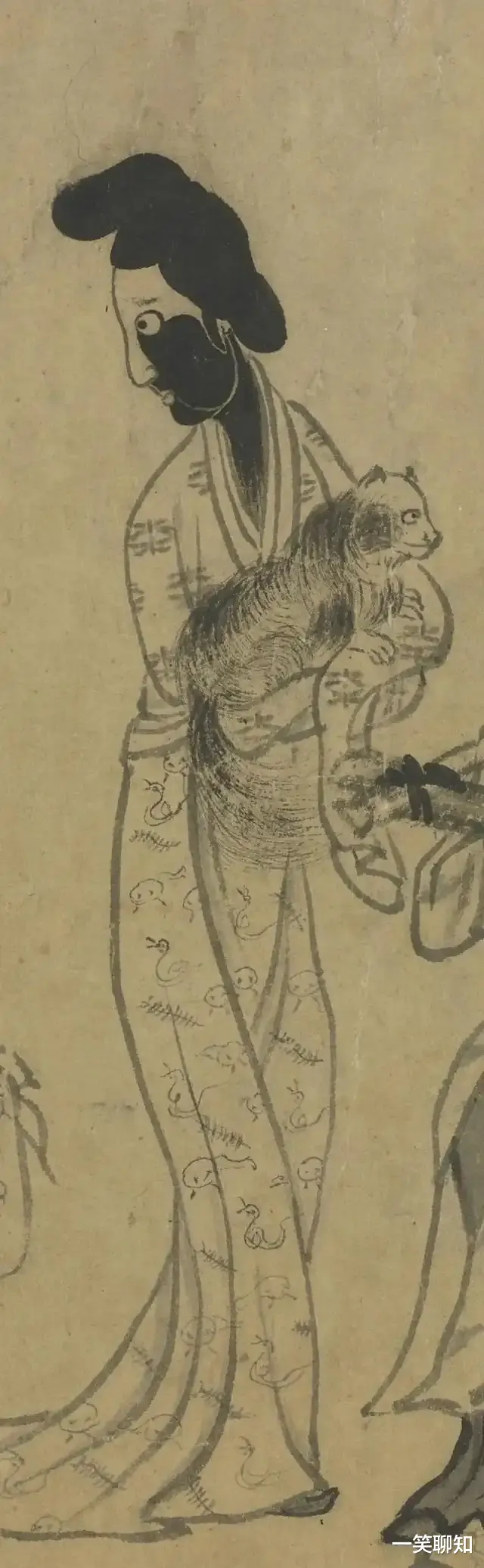 画中最夺目的是钟馗妹妹和侍女的“半面墨妆”:半边脸涂满墨黑,另半边却素净苍白。这种妆容源自唐代“时世妆”,白居易曾写诗讽刺其“乌膏注唇唇似泥,双眉画作八字低”的畸形审美。但龚开在此并非单纯仿古,而是用墨黑象征被异族统治涂黑的世道,苍白则暗示汉人的屈辱与无力。正如他在题跋中强调“不应将墨鬼视为戏笔”,这些墨妆女子正是乱世中被压迫者的缩影。