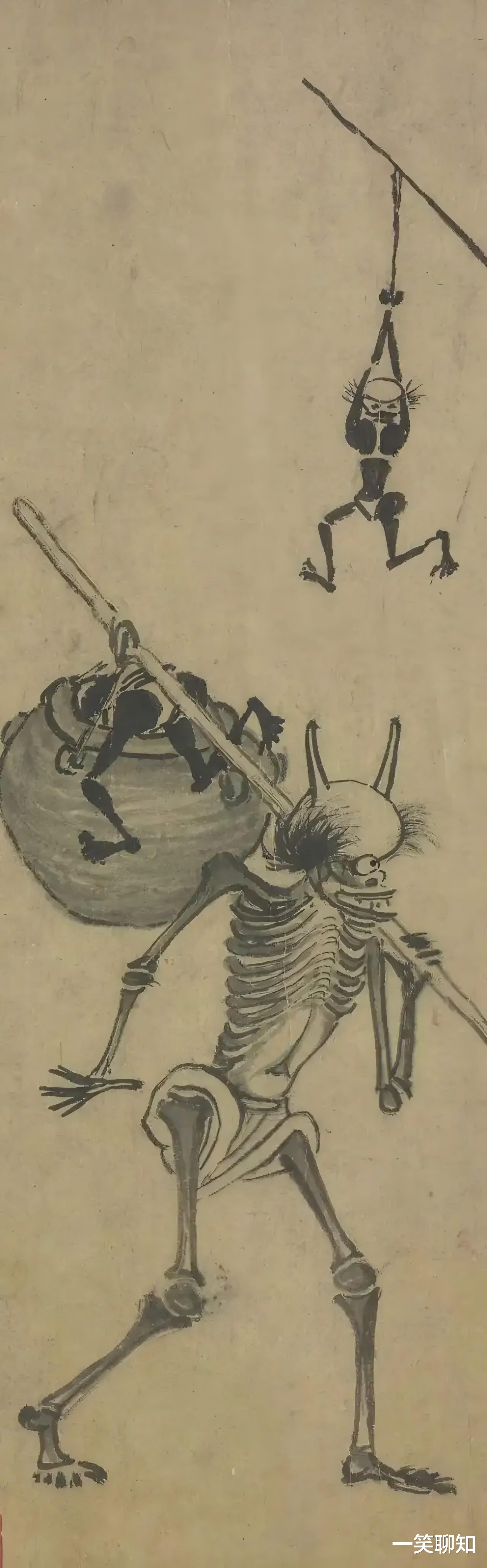 更令人触目惊心的是小鬼的待遇。他们或被捆成行李,或被插在棍棒上,毫无尊严可言。这种“以鬼为粮”的设定,暗合了南宋灭亡后汉人的悲惨境遇——元蒙统治者将汉人列为最低等的“南人”,百姓如同俎上鱼肉。