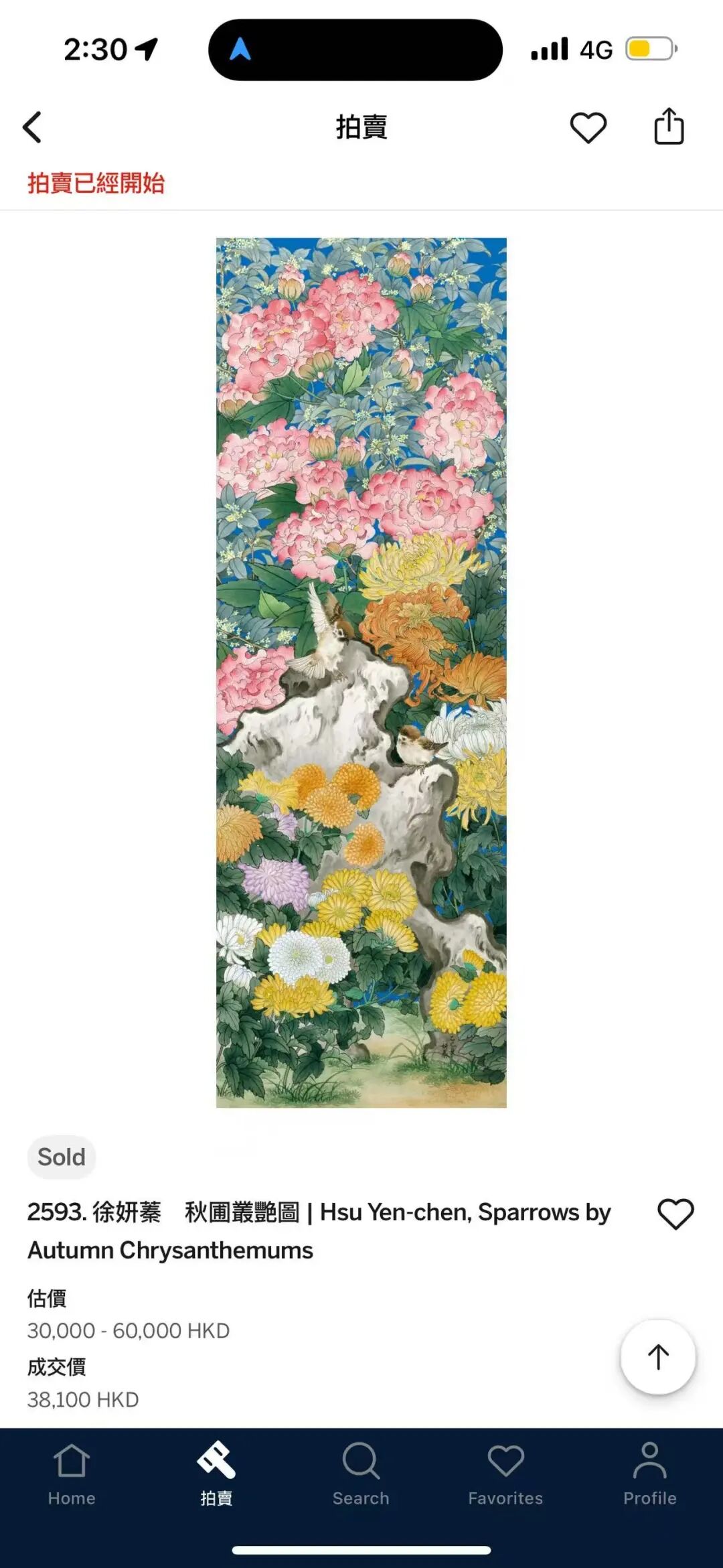 台湾地区青年画家徐妍蓁的这一次秋拍,给了观众一个清晰信号:她的艺术版图远不止山水与宫廷题材!香港苏富比秋拍现场,编号2593的《秋圃丛艳图|Sparrows by Autumn Chrysanthemums》在竞价声中落槌成交。画面以密植铺陈的菊花、芙蓉、桂花以及玲珑太湖石为主体,麻雀穿行其间,花叶层层叠叠、矿物色沉着清澈,既见工笔的绵密与细谨,也见设色的大气与明朗;这件作品从题材到语言,与她过去以宫廷气度与传统山水见长的道路拉开距离,却依然能够在大型拍卖体系中获得认可,恰恰说明她的能力边界并非由题材决定,而是由对“画理”的长期积累所决定。