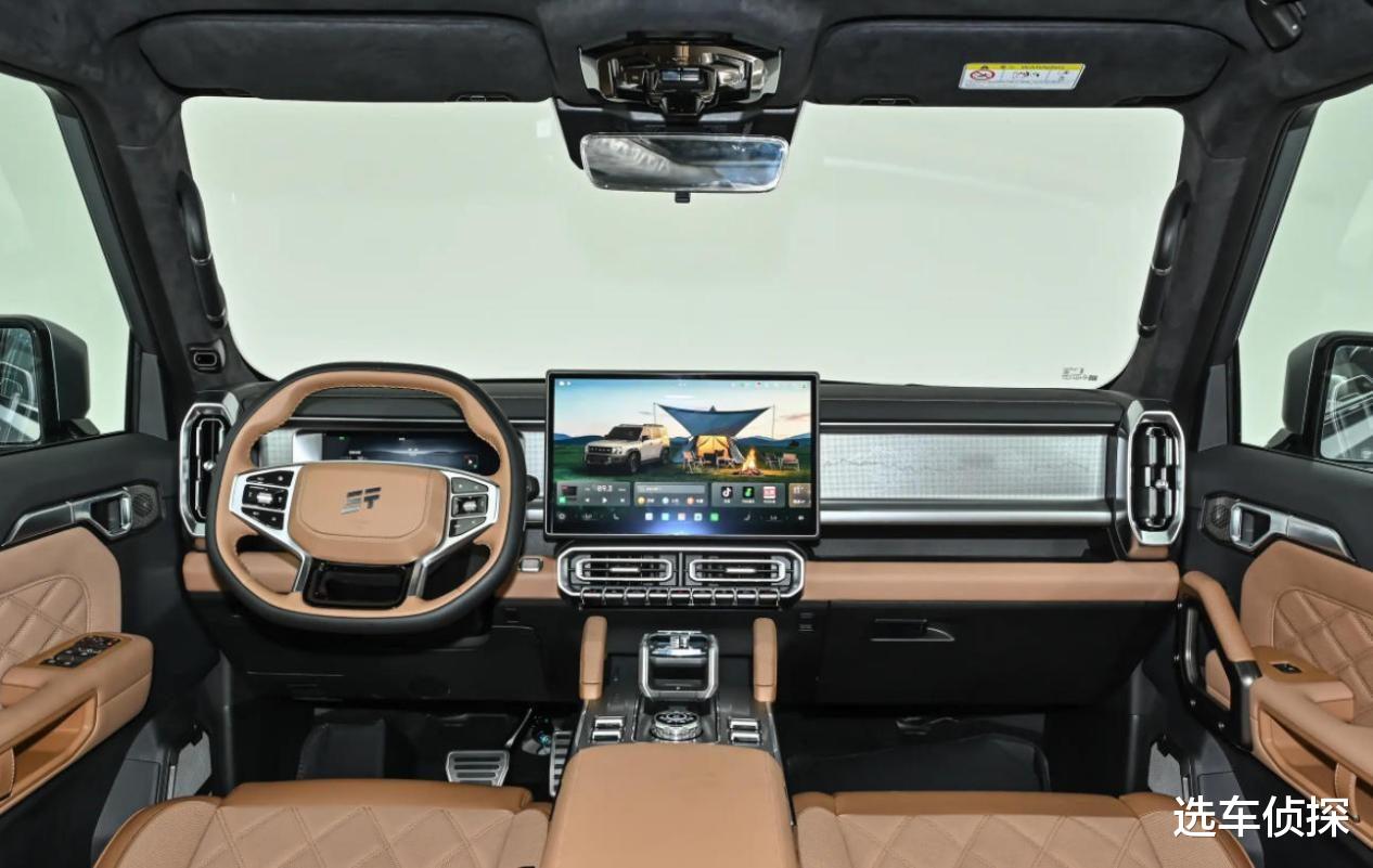 入门款标配胎压显示、定速巡航、电动吸合尾门、主驾无钥匙进入、远程启动等,内置高通骁龙8155芯片和15.6英寸中控屏,芯片算力高于哈弗大狗,和BJ40持平,但音响较为落后,配备没有品牌的8喇叭音响,而BJ40入门版是Infinity 10喇叭音响。同时手机互联方面稍有缺失,没有苹果Carpaly,而BJ40和哈弗大狗都标配。价位接近的哈弗大狗有前排座椅加热通风,BJ40有加热和按摩,但旅行者都没有。