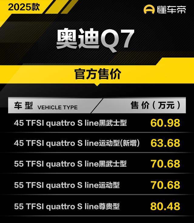 说出来你可能不信,奥迪Q7这回悄咪咪地出了个新款,售价63.68万元,号称配置升级、动力优化。