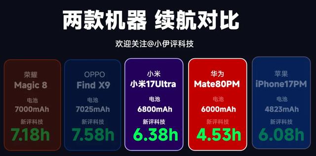 - 续航能力更强:6800mAh大电池,重度使用一天后剩余32%,比华为多800mAh。