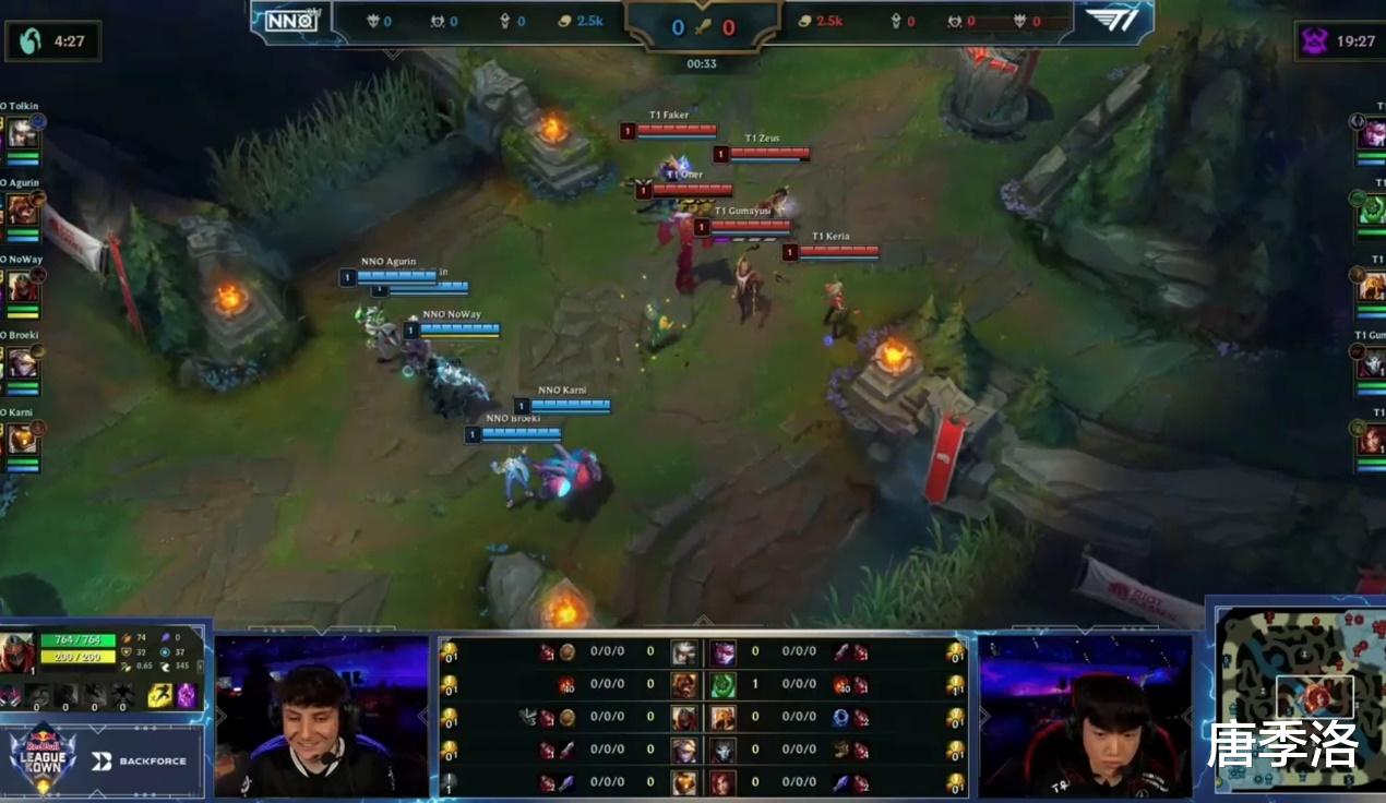 虽然T1的横扫之势看起来凶猛,但前四场比赛很明显能看出来,这几支队伍主打的还是一个开心。欧洲赛区硬实力确实不如T1,但大家貌似也没怎么尽力,没什么战术设计,也没什么极限操作。甚至T1和NNO的比赛,两支队伍开局还在中路搞了波排排站大乱斗,两边选手的嘴角比AK还难压,脸上都乐出花儿了。