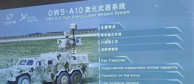 OW5家族激光武器系统是兵器工业的产品,也是较早就推出的产品,按照功率和尺寸大小分别由10/30/50三个规格的产品,其中A10代表10KW,功率较小,属于超近距离防御武器。