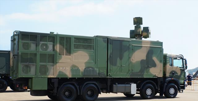 这是已经内装服役的型号,具体型号名暂时还不清楚,从车体上看,功率应该不小,至少有30KW,作用距离理论上可以达到10公里。