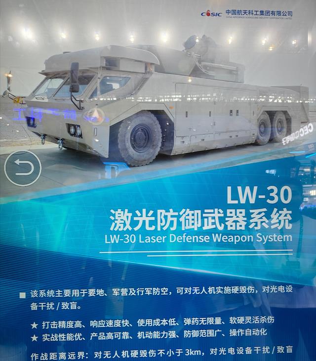LW属于航天科工产品,在国际范围内亮相非常早,是一直走在技术最前沿的一批激光武器系统,LW-30功率30KW(等同型号中的数字),对无人机的杀伤距离3公里,对光电设备干扰距离6-10公里。